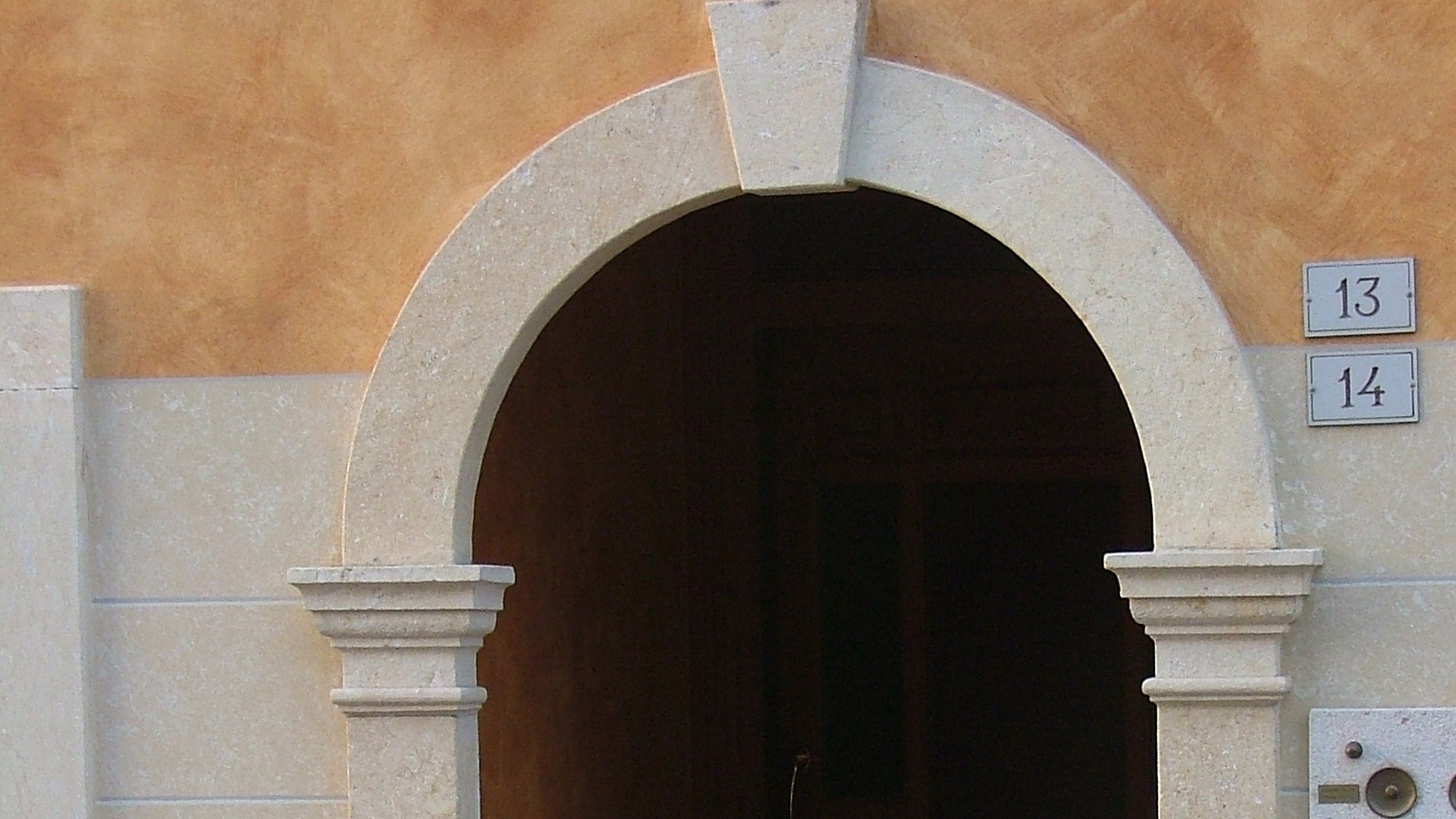 Porta a volto in tufo giallo levigato.